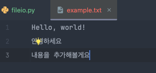 file.write('\n내용을 추가해볼게요')