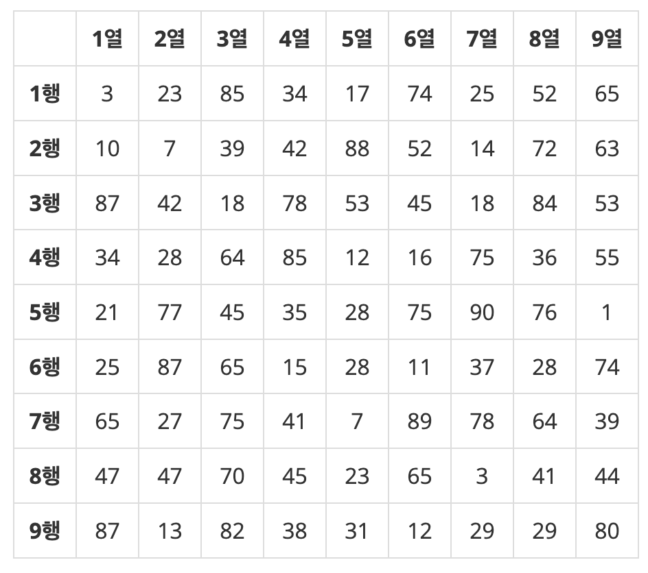 예를 들어, 다음과 같이 81개의 수가 주어지면