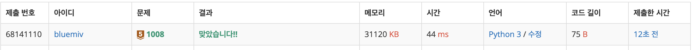 https://github.com/bluemiv/Algorithm/blob/master/baekjoon/ex1008/ex1008.py