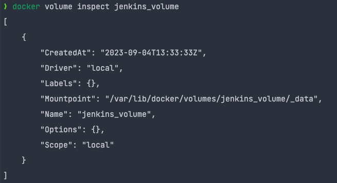 생성된 볼륨의 상세 정보를 확인할 때는 inspect 명령어를 사용할 수 있습니다.