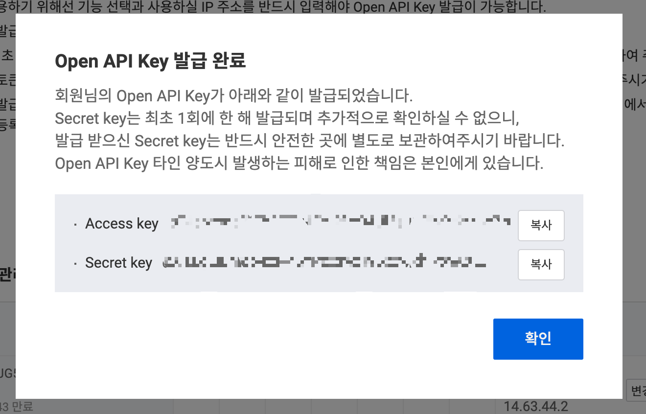 키 발급이 끝났으니 이제 Upbit의 API를 사용하실 수 있습니다.