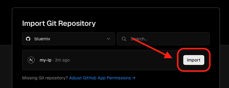 처음에는 연결해둔 git repository가 없기 때문에 아무것도 안나올텐데 아래 Adjust GitHub App Permissions → 를 눌러서 git repository와 연결을 합니다.